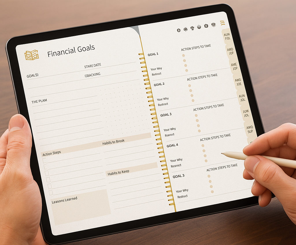 A digital planner is an interactive planning tool used on devices like tablets, smartphones, or computers. It is usually in PDF format and works with note-taking apps.