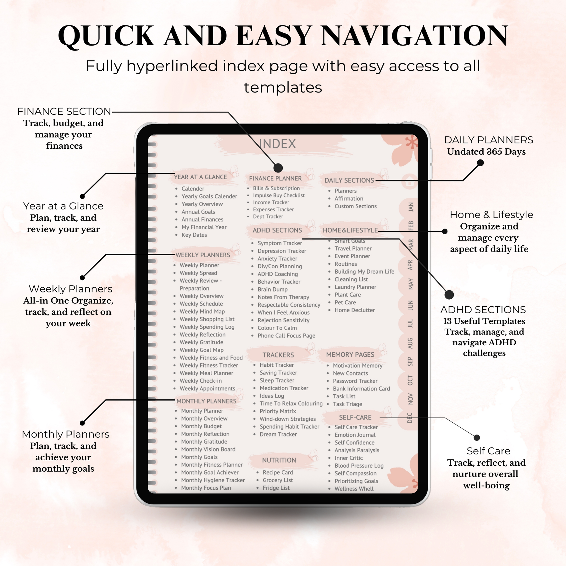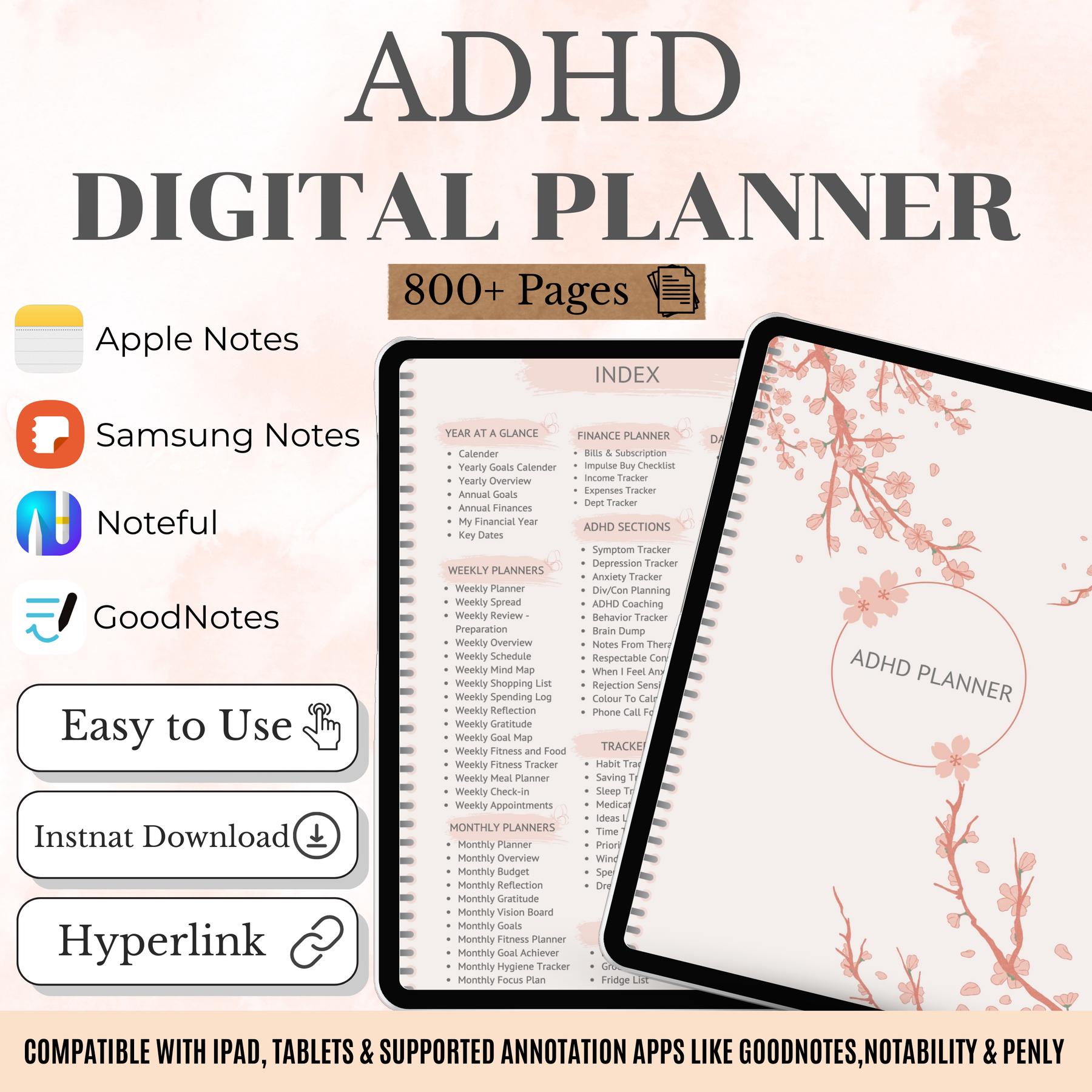 Planificador digital para TDAH – 818 páginas | Con hipervínculos, sin fecha y descarga instantánea