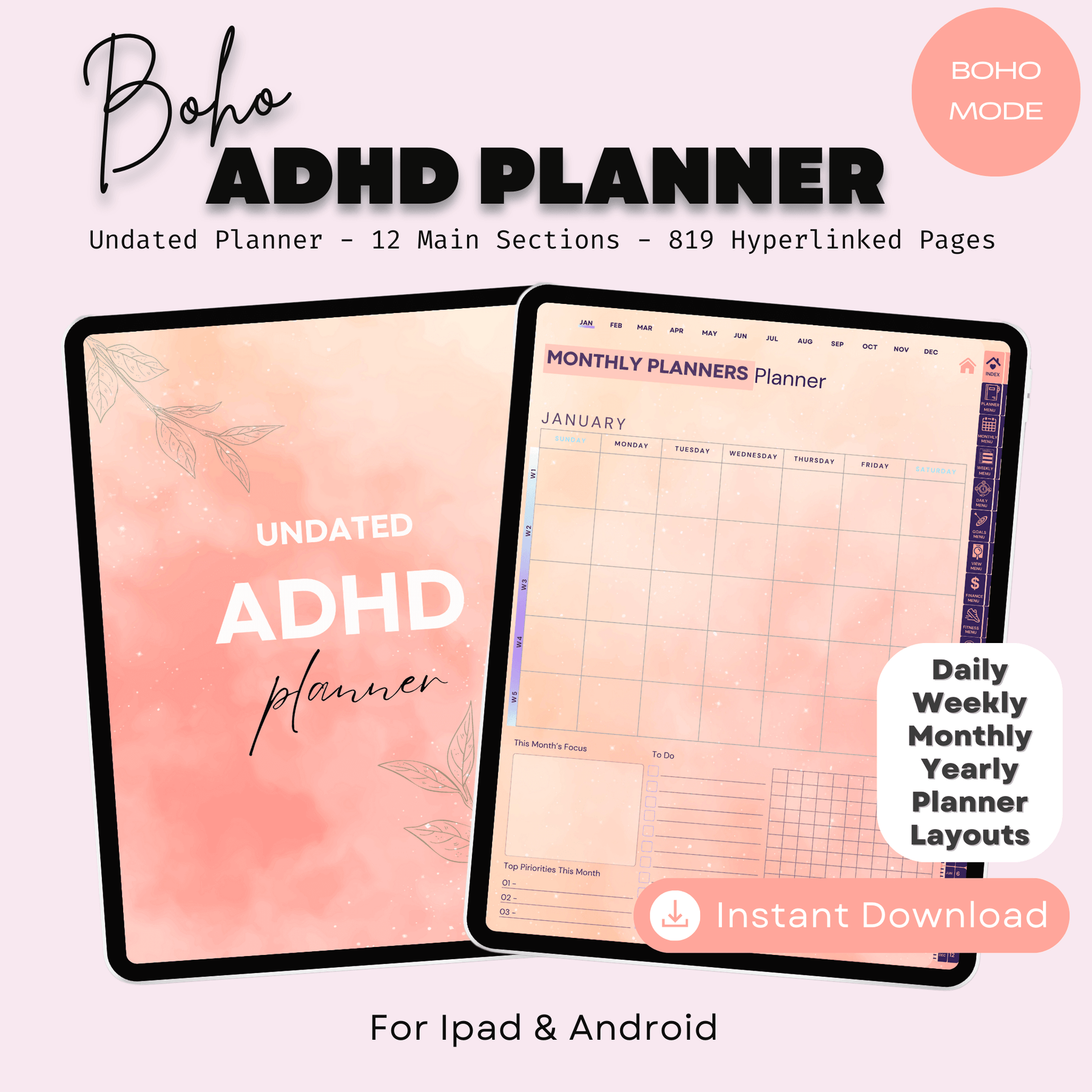 🌻 UN PLANIFICADOR DIGITAL PARA TDAH DISEÑADO CONSCIENTEMENTE PARA CLARIDAD, ESTRUCTURA Y TRANQUILIDAD – EDICIÓN BOHO